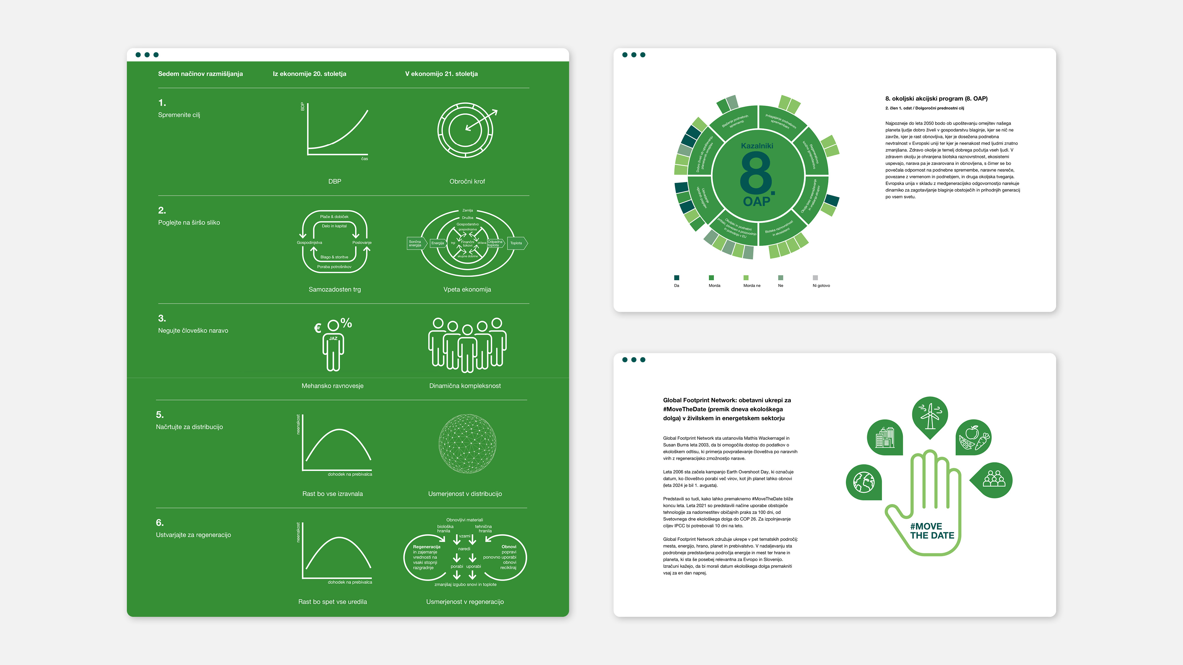 Za naročnika, Agencijo RS za okolje (ARSO), smo razvili celosten komunikacijski sistem: publikacijo, spletno stran in vsebine za družbena omrežja, ki znanstvene ugotovitve prevajajo v jasno, dostopno in vizualno strukturirano izkušnjo.