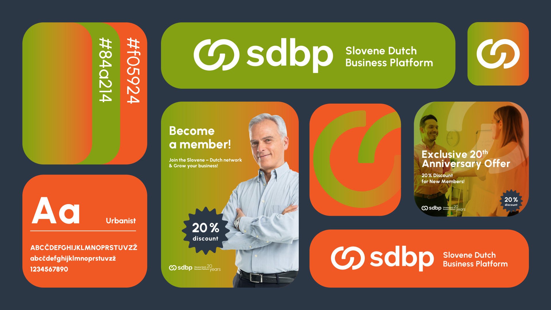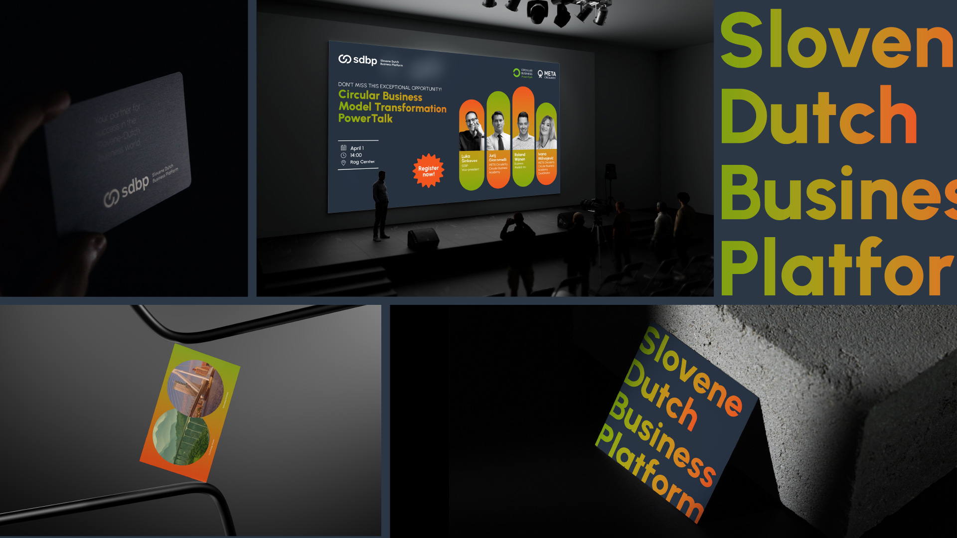 Slovene Dutch Business Platform je potrebovala osveženo vizualno identiteto, ki jo predstavi kot sodobno, dinamično in konkurenčno poslovno mrežo. Izziv je bil oblikovati podobo, ki hkrati odraža povezovanje med Slovenijo in Nizozemsko ter nagovarja mednarodno poslovno okolje.