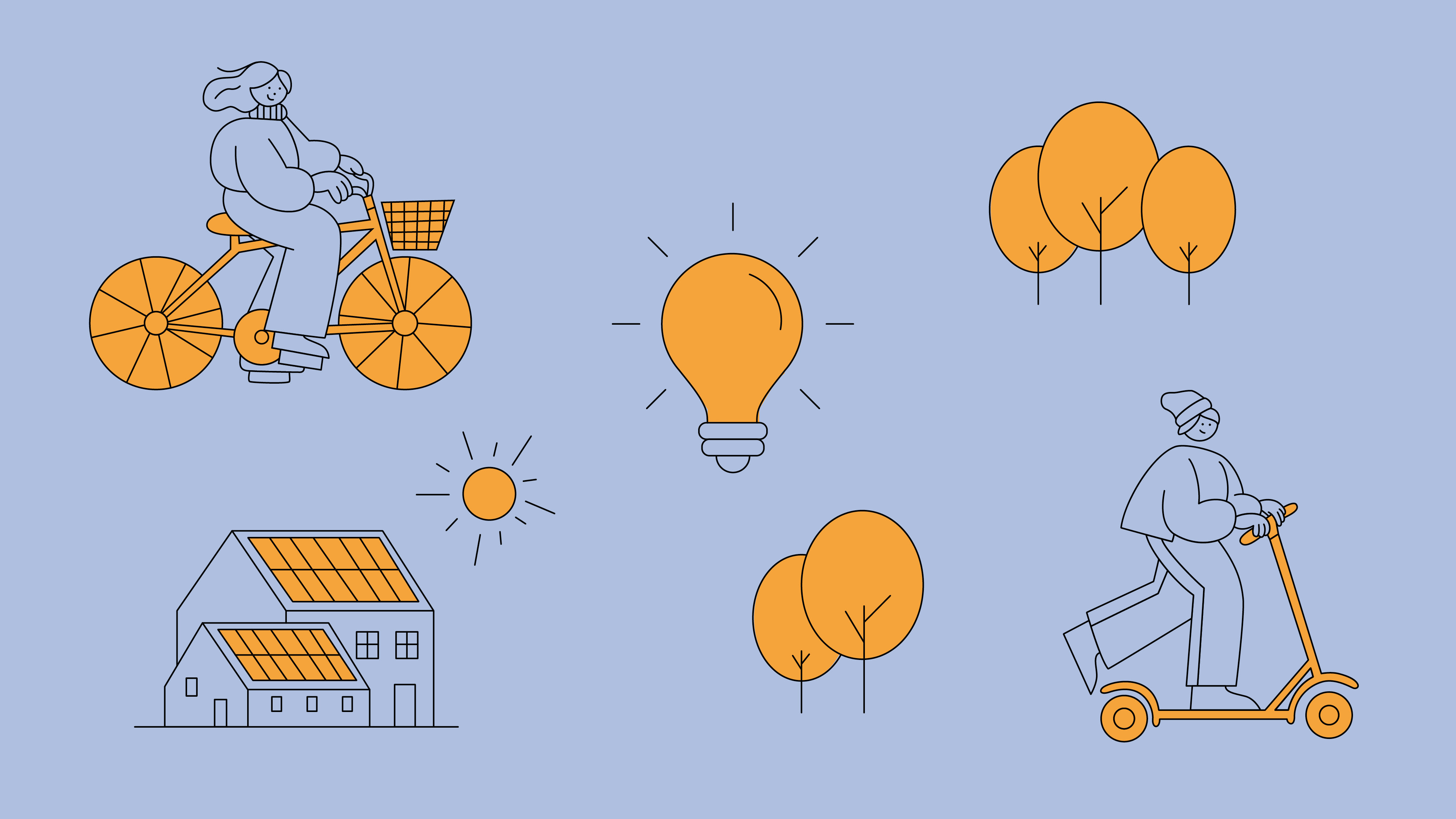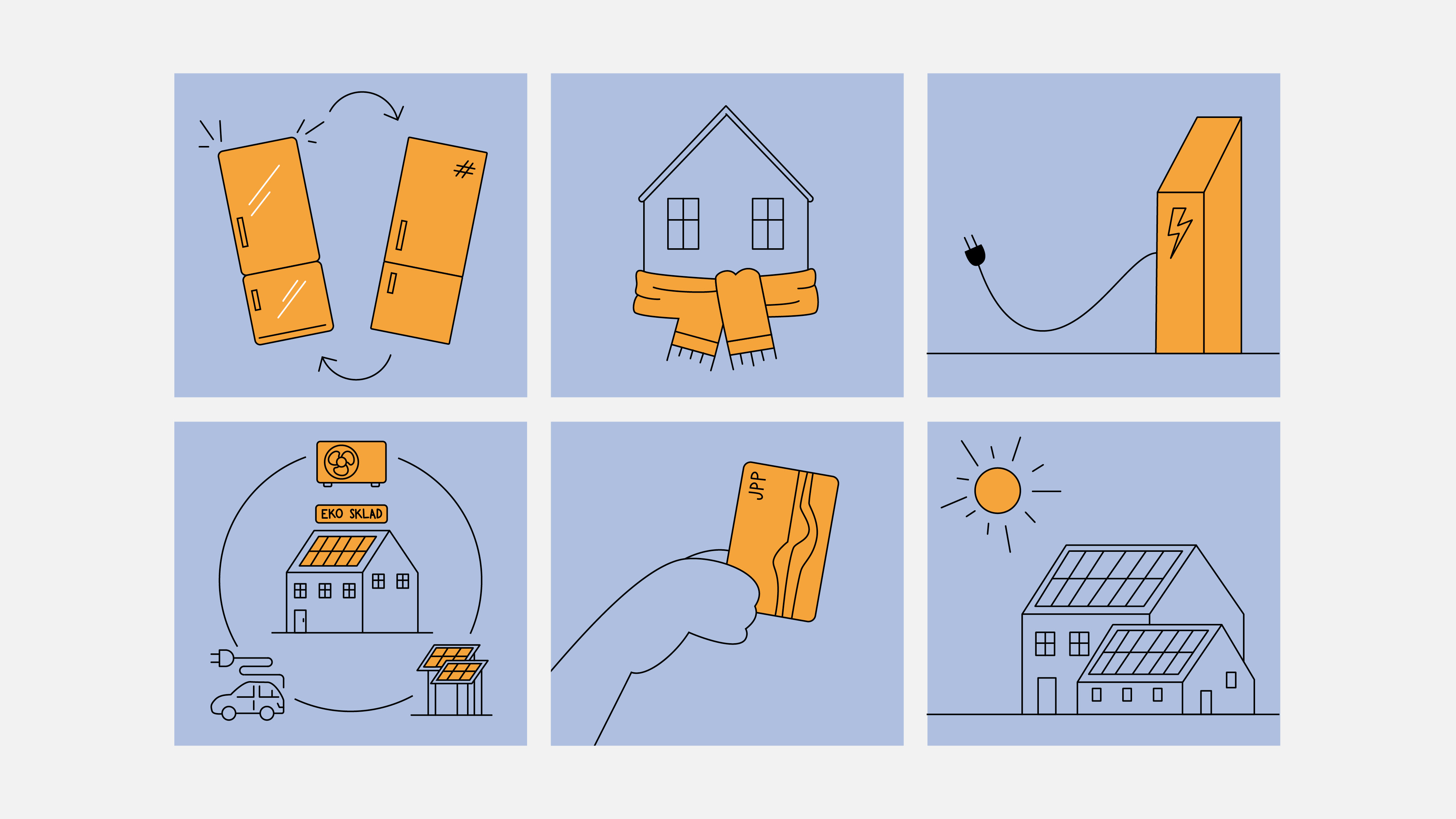 Grafična zasnova temelji na jasni informacijski strukturi in sveži vizualni govorici. Linearne avtorske ilustracije z ročno potezo prikazujejo realne situacije in konkretne predloge za bolj trajnostno ravnanje – od kuhanja do ogrevanja doma – ter v sicer podatkovno bogato vsebino vnesejo toplino, bližino in prijaznost.